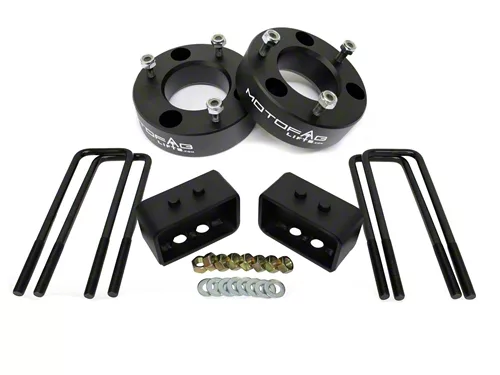 Provides A Simple Leveling Solution. The MotoFab 3 in. Front and 2 in. Rear Leveling Kit is an easy and safe way to provide a slight lift to, or leveling for your Ford F-150. The kit features a set of front strut spacers and new replacement lift blocks that are easy to install and donāt require any drilling or cutting. Additionally, the kit is designed to be tough and durable to make it fit for long-lasting service. And since the kit doesnāt change your suspensionās geometry, the kit maintains the truckās factory ride quality.