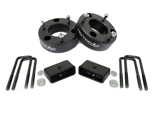 Incomparable Manufacturing. Crafted from durable CNC machined, billet aluminum, these spacers are black powder-coated and match your vehicle’s factory suspension. The upgraded rear lift blocks are powder-coated as well so you won’t have to worry about corrosion with any components.