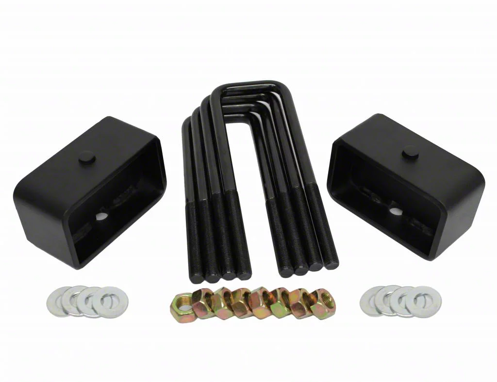 This kit comes with new fabricated rear lift blocks and longer U bolts. Fabricated lift blocks will out last cast iron and will far outlast solid aluminum rear lift blocks. These rear lift blocks are also powdercoated for a long lasting finish. These are tapered rear blocks so you will keep the correct pinion angle. This kit is the strongest on the market and come with a 100% satisfaction guarantee and a lifetime warranty. It will come to you complete with all the hardware and instructions. All MotoFab lifts products are proudly made in the USA with USA sourced materials!