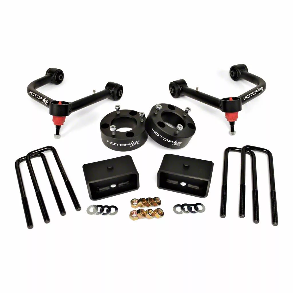 Application. This MotoFab 3-Inch Front/2-Inch Rear Leveling Kit with Upper Control Arms is created to fit 2019-2024 Chevrolet Silverado 1500 models, excluding Trail Boss vehicles.