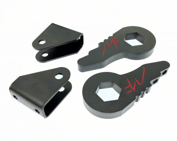 Functionality with a Reliable and Durable Solution. Offering adjustable lift height, this leveling kit allows you to tailor the front elevation of your truck from 1 to 3 inches. The kit includes CNC-machined torsion keys, precision-made for a perfect fit and lasting durability. Finished with a robust powder-coated finish, the torsion keys resist rust and corrosion, ensuring your leveling kit remains in top condition through all your adventures. Included shock extenders further enhance the kit's performance by improving handling and maintaining a comfortable ride quality.