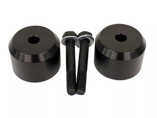 Billet Aluminum Spacers. This front leveling kit consists of durable spacers. The spacers are made of billet aluminum which makes them capable of supporting your truck’s heavy weight and load. With this type of construction, the spacers won’t compress, crack, or break. Furthermore, they are completed with a textured black powder-coat finish to enhance their resistance against rust and corrosion.