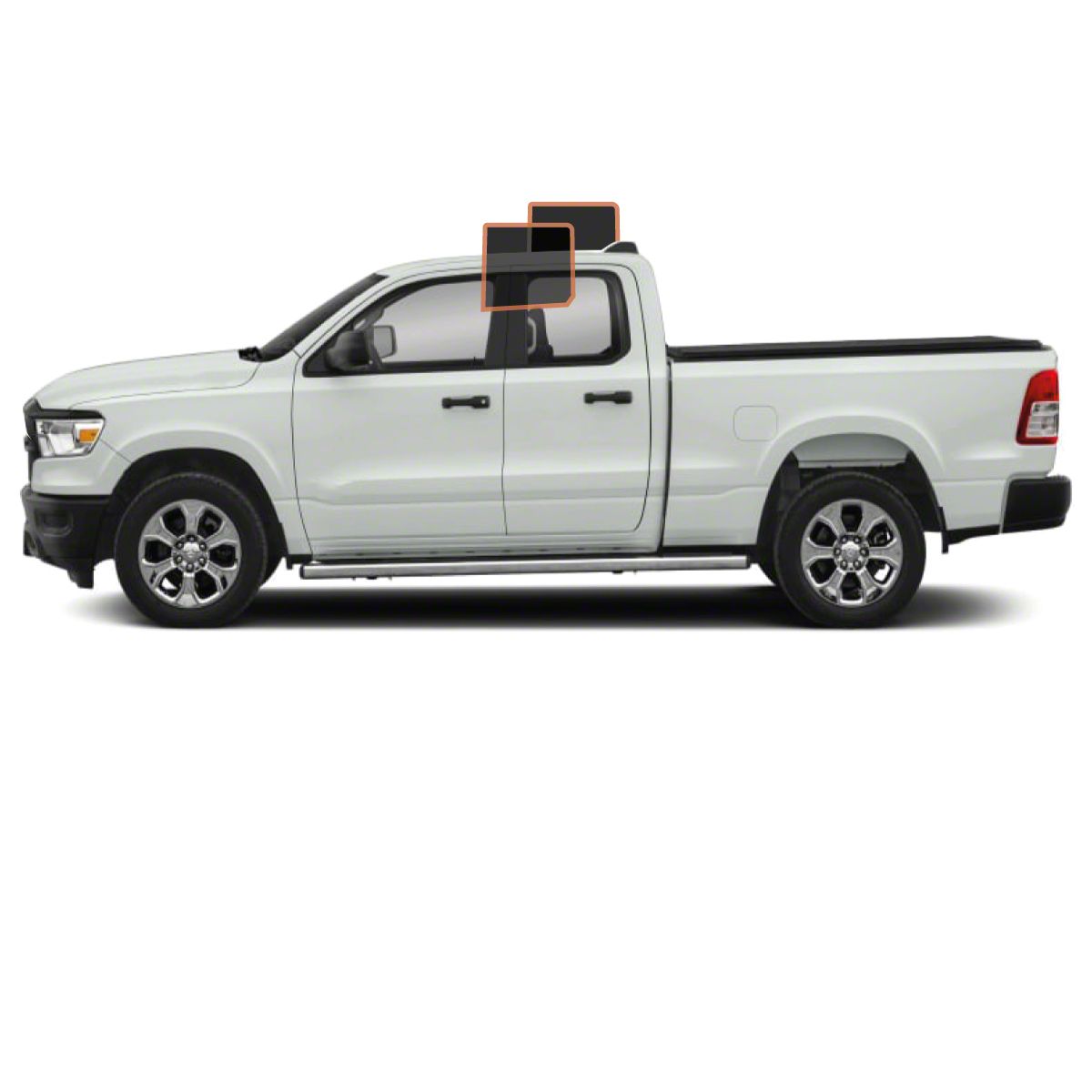 Application. This MotoShield Pro Rear Driver/Passenger Window Tint; 5% is designed to fit 2009-2018 RAM 1500 Quad Cab models. Please check your local tint laws before ordering.