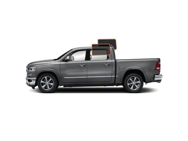 Application. This MotoShield Pro Rear Driver/Passenger Window Tint; 5% is designed to fit 2019-2025 RAM 1500 Crew Cab models. Please check your local tint laws before ordering.