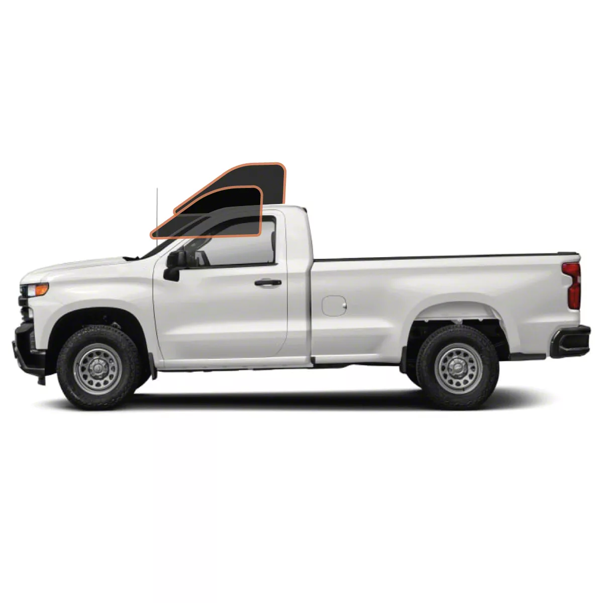 Application. This MotoShield Pro Front Driver/Passenger Window Tint; 35% is designed to fit 2019-2026 Chevrolet Silverado 1500 Regular Cab models. Please check your local tint laws before ordering.