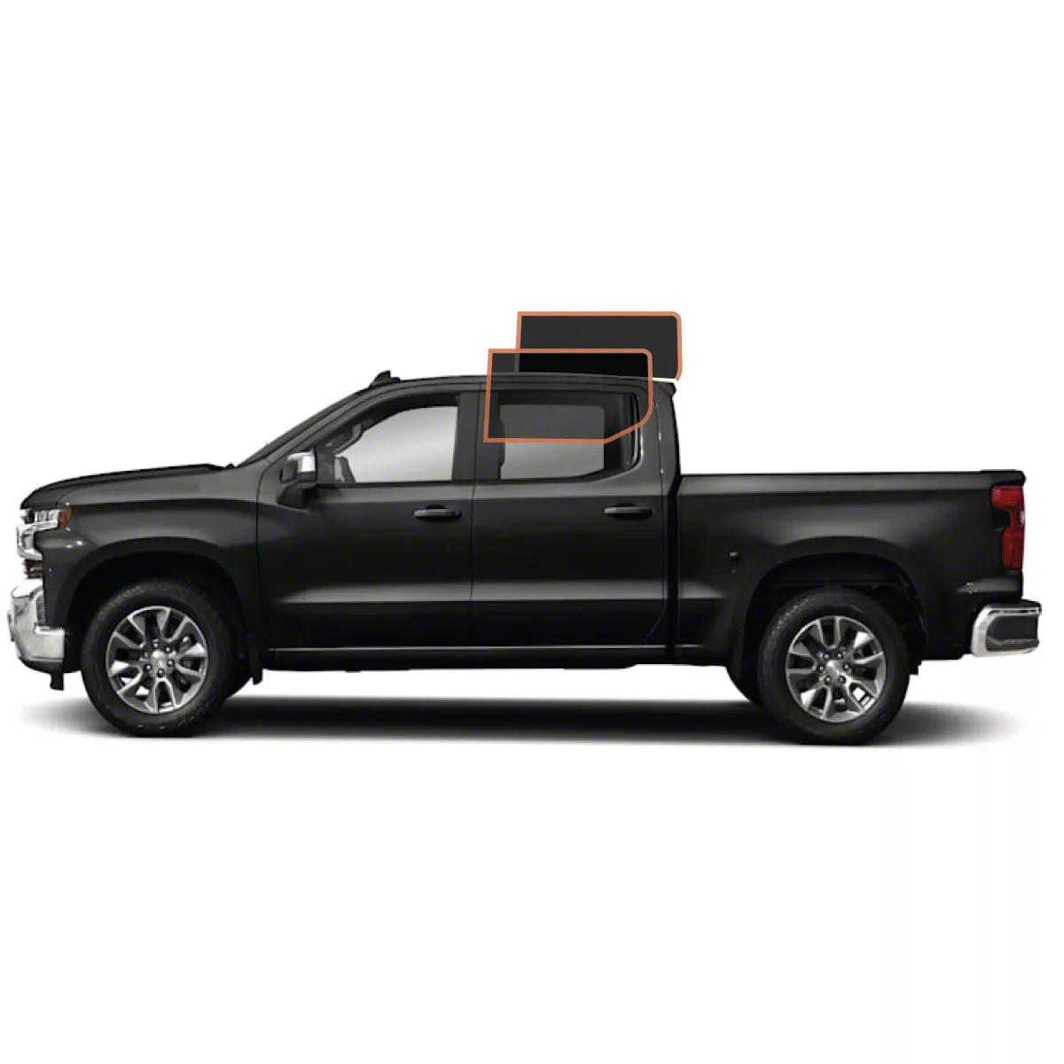 Application. This MotoShield Pro Rear Driver/Passenger Window Tint; 5% is designed to fit 2019-2026 Chevrolet Silverado 1500 Crew Cab models. Please check your local tint laws before ordering.