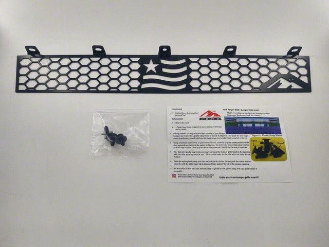 Application. This Mountains2Metal Merica Bumper Grille Insert fits all 2019-2023 Ranger Models.