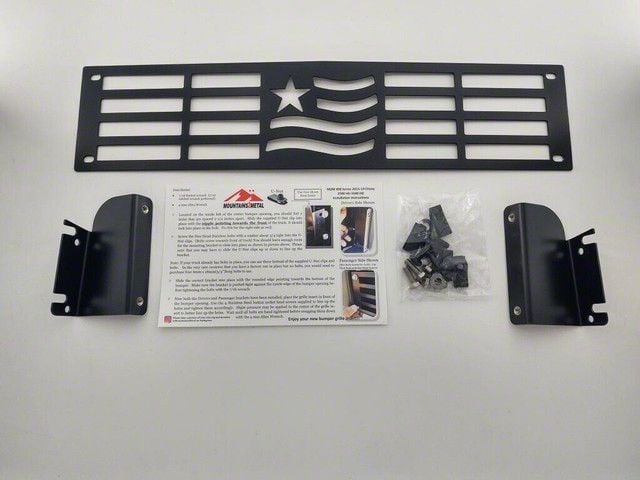 Installation. The installation of Mountains2Metal Merica Bumper Grille Insert in Black inserts into the existing grille, may require removal of the grille and uses clips or bolts, minor drilling may be required for some vehicles.