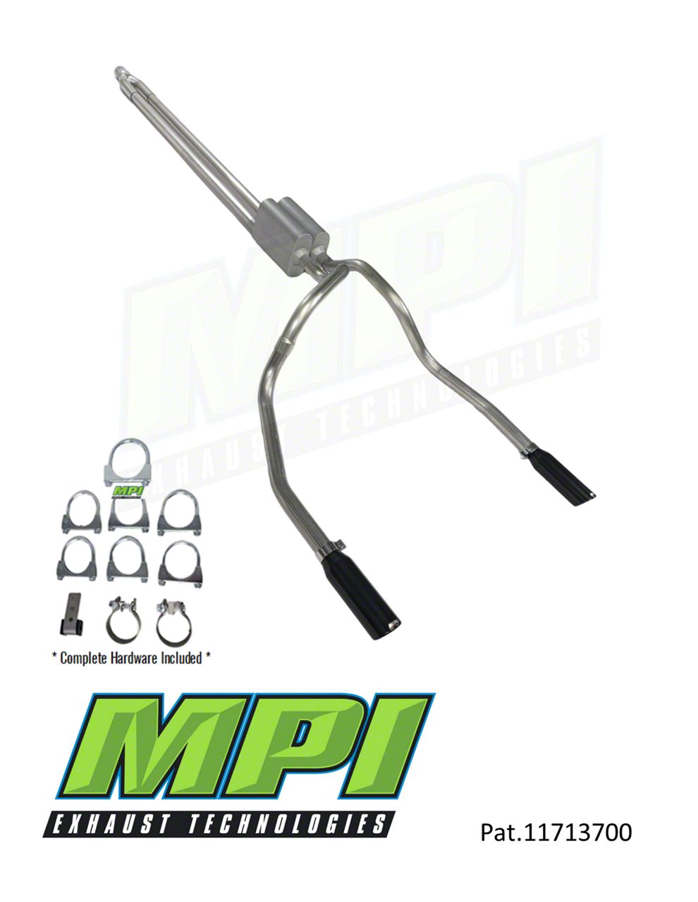 Performance Enhancer. The MPI Exhaust Technologies Performance Series Weld-On Dual Exhaust System with Black Tips increases exhaust flow, enhances overall power, and provides a more aggressive sound for your F-150. It’s designed to eliminate in-cab droning while enduring harsh environments.