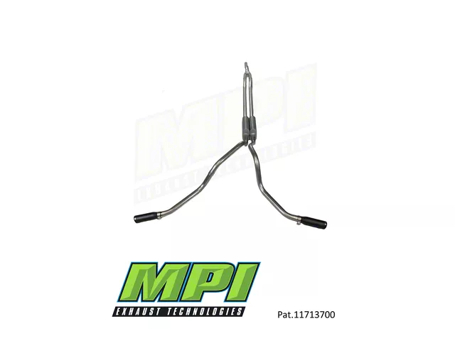 Application. This MPI Exhaust Technologies Stainless Steel Performance Series Clamp-On Dual Exhaust System with Black Tips fits 2020-2026 7.3L F-350 Super Duty models.