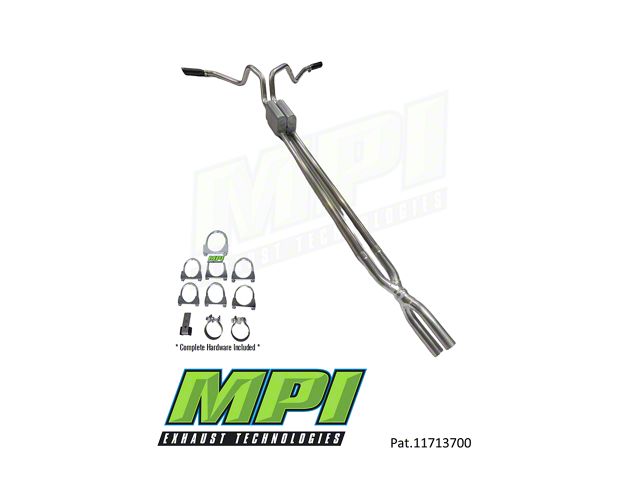 Application. This MPI Exhaust Technologies Stainless Steel Performance Series Clamp-On Dual Exhaust System with Black Tips fits 2007-2013 5.3L Silverado 1500 models.