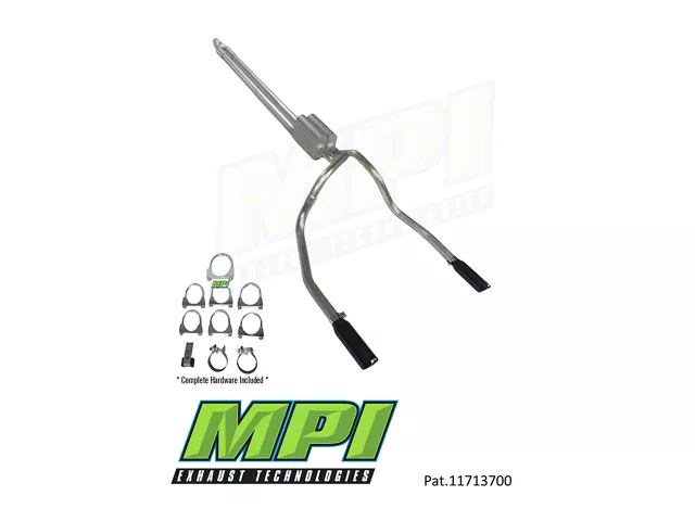 Amplified Performance. The MPI Exhaust Technologies Stainless Steel Performance Series Clamp-On Dual Exhaust System with Black Tips (Rear Exit) significantly enhances the exhaust flow and performance of your 6.0L Silverado 2500 HD model. Designed to increase fuel economy and deliver an aggressive sound profile, this system achieves high performance without causing an in-cab drone.