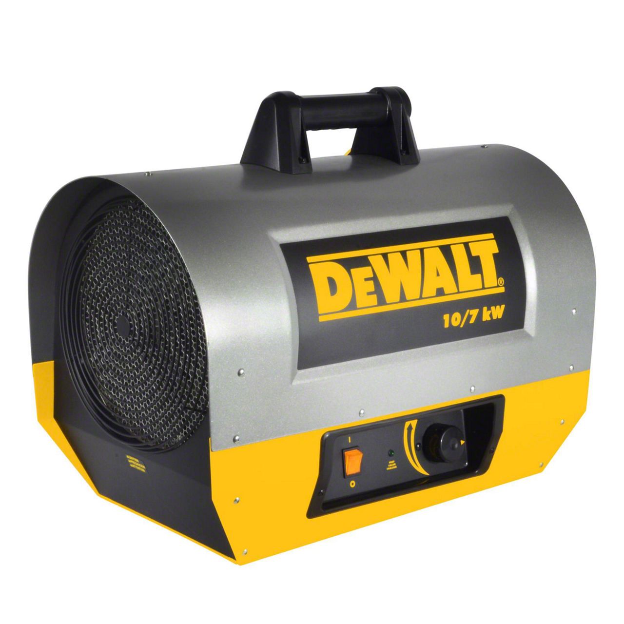 Description. DXH1000TS 10/7KW 240V Electric Heater. DeWalt forced air electric heater with variable heat output, thermostatic control 240 V single phase input ad 22,861 to 34,121 BTU heat output.