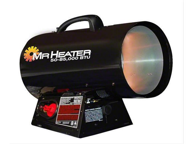 Description. Heavy-duty design built for the jobsite. The Mr. Heater Liquid Propane Forced Air Heater comes with a standard 10ft hose and regulator and all the safety you would expect of a Mr. Heater product. Equipped with factory installed high limit switches and thermoelectric safety valves, you can feel comfortable using these heaters on any jobsite. Just plug the heater into a 110v outlet, hook up the included hose and regulator to a 20lb propane tank or larger, and you are ready to take the chill out of any job.