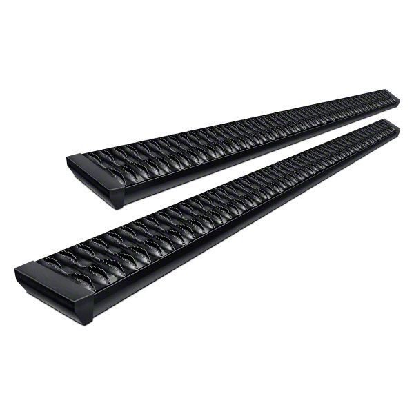 The Growler running board provides a clean yet aggressive look your vehicle. The Sure Grip tread design allows for ultimate traction in any condition. All aluminum construction with modular steel brackets offers long lasting durability and strength for all of your vehicle needs. Bolt-on brackets make installation quick and easy. This is a convenient option for work truck and fleet solutions.