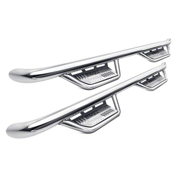 Patented N-FAB hoop step design featuring an all-new expanded and enclosed sure-grip step plate. With a 3 in. main tube diameter, this application fits high and tight to the vehicle body for a clean modern style. Fully welded 1-piece construction for strength, long lasting durability and ease of installation! Created from Stainless Steel construction. Drop down step design and location is engineered to allow for ease of access on stock or lifted vehicles. Lifetime finish warranty on polished stainless steel, 5 year finish warranty on textured black finish and lifetime craftsmanship warranty. For the ultimate vehicle access experience in any condition!