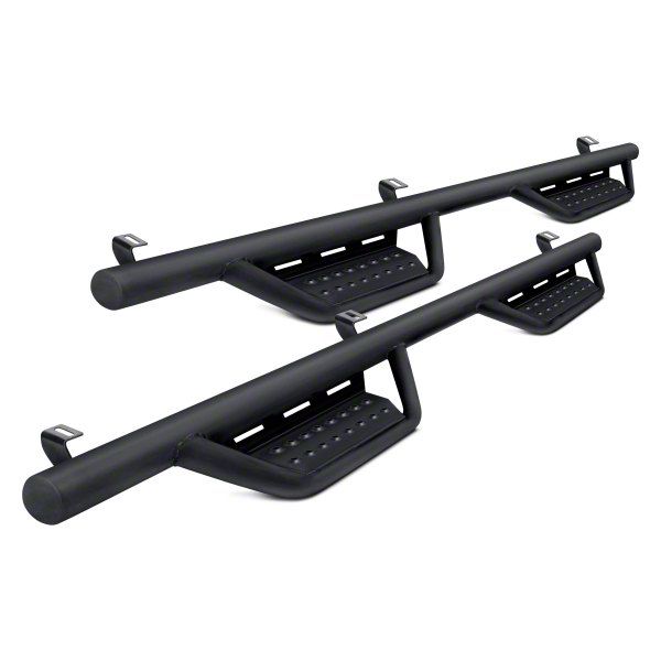 Durable Fixed Steps. Built from 0.084-wall tubular steel, these durable N-Fab RS Nerf Side Step Bars are made for the GMC Canyon Crew Cab. Coming in pairs with a matte black finish, these side step bars have a classic N-Fab fixed step design and are of cab length for an easy and safe way to exit and enter your ride’s cab.