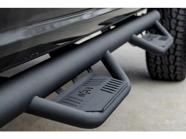 High-End Quality Material. These step bars are produced from high-end stainless steel, ensuring excellent corrosion resistance and long-lasting performance. Featuring enclosed sure-grip step plates, the N-Fab Cab Length Podium Nerf Side Step Bars offer secure footing and enhanced safety when entering or exiting your vehicle. The 3-inch diameter main tube provides a sturdy and robust construction, capable of withstanding the rigors of daily use.