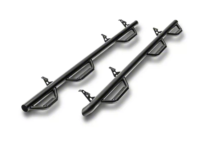 High-Quality Steel Construction. For maximum strength and longevity, these N-Fab Wheel-2-Wheel Bed Access Nerf Side Step Bars are made of high-quality steel material. Furthermore, these side step bars feature a textured black finish to protect them against corrosive elements.