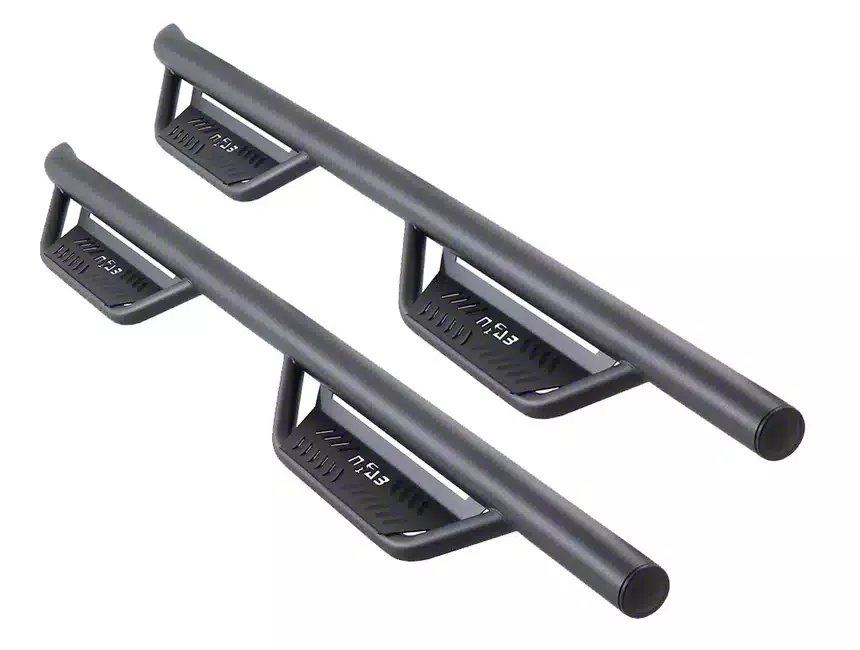 Enhanced Cab Access. The N-Fab Cab Length Podium Nerf Side Step Bars in Textured Black are designed to provide easy access to the cab of your 2019-2026 RAM 3500 Mega Cab. These side step bars offer a sturdy and reliable platform for entering and exiting your vehicle, ensuring safety and convenience. The cab-length design provides ample stepping surface, making it easier for passengers to get in and out. The stylish and functional design enhances the overall look of your vehicle while providing practical benefits for daily use.