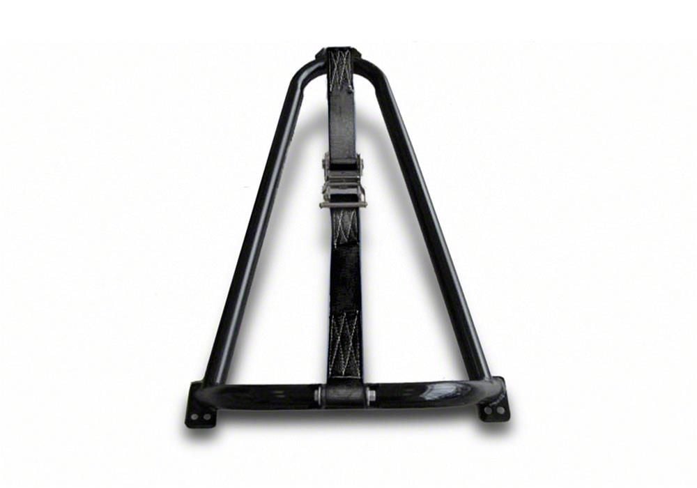 Durable Construction. This bed-mounted tire carrier exhibits a durable build. Made with a tough 0.095 wall tubing, this tire carrier is able to withstand the weight of your spare tire without bending or breaking. It is also crafted with a black nylon ratchet strap that’s elastic and tear-resistant. Furthermore, the wall tubing is completed with a gloss black coating to protect it from rust.
