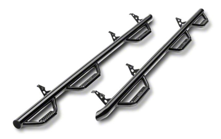 Heavy-Duty Construction. Built for your rough all-terrain adventures, these Wheel 2 Wheel Bed Access Nerf Side Step Bars are made of high-quality 3-inch main tubing. The heavy-duty stainless steel construction ensures that these side steps can hold up well with long-term off-road use. The anti-skid foot pads are made of durable steel plates to secure your footings under any weather. Additionally, the gloss black finish adds a stylish appeal that gives your vehicle a customized look and enhanced elegance.