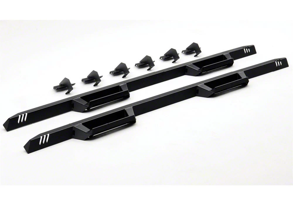 Functional Side Step Bars. Never have a problem getting in and out of your GMC Sierra 2500 HD’s cabin with these N-Fab EpYx Cab Length Nerf Side Step Bars; Textured Black. These side step bars feature patented drop-down step design with wide and deep step plates, which ensures safe and reliable access to your truck’s cabin at all times. The step bars are also designed to fit exactly to the vehicle body and feature a rugged black finish that complements the look of an off-road truck.
