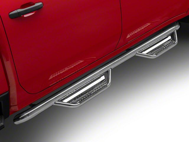 Elegant and Attractive Design. These polished stainless Sierra 2500 Cab Length Podium Nerf Side Step Bars include a proprietary N-FAB Hoop Step design that allows the main tube to fit snugly into your Sierra's body, giving it a sleek appearance. Expanded and enclosed step plates make getting in and out of your truck more convenient and safer. Additionally, the cab-length tube protects the driver's side from road hazards.