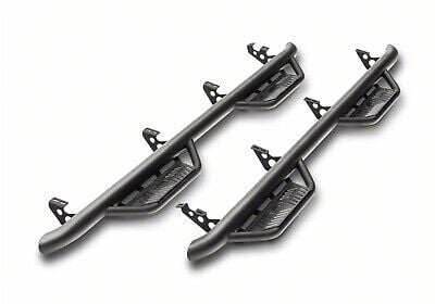 Engineered for Strength and Longevity. Manufactured from corrosion-resistant stainless steel and coated in a textured black finish, these side step bars are designed to withstand exposure to rain, road salt, and impact. Their welded construction prevents flexing and adds reinforcement at all critical stress points.