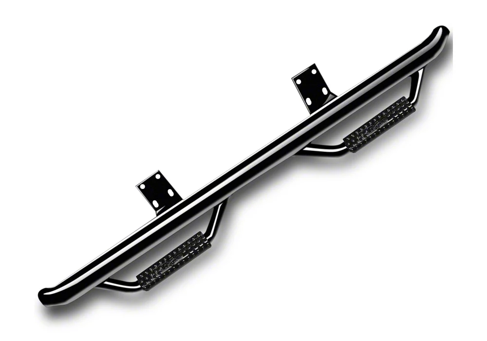 Remarkable Off-Road Step Bars. Expand your Super Duty's rugged capability with these gloss black N-Fab Cab Length Nerf Side Step Bars. They feature drop-down steps with a hoop design for improved footing, while mounting your raised vehicle. These step bars have also been designed to install closely to the body of your vehicle for a neater look, while also providing excellent lower side protection against road hazards.