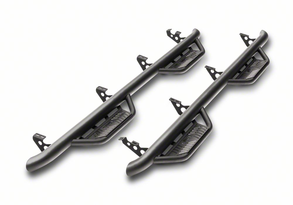 Safe and Stylish Truck Access. Give your Ford Super Duty a superb stepping modification for secure and comfortable cab access, especially when coming from muddy or snowy grounds. These N-Fab Cab-Length Podium Textured Black Nerf Side Step Bars not only provide safer access to your cab by means of the hoop steps, but are also effective in blocking the various off-road debris that can potentially damage your side panels and scrape the body paints. Moreover, this pair of nerf bars comes with an appealing all-black look that gives your SuperCab a bold off-road styling.