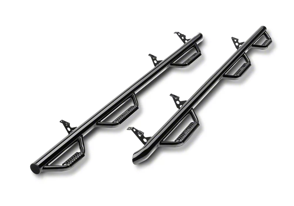 Durable Steps for Safer Vehicle Access. If you want side step bars that are durable and of high-quality, then opt for these gloss black N-Fab Wheel-2-Wheel Bed Access Nerf Side Step Bars. These side step bars are made with a patented drop down step design that’s able to handle a step load rating for up to 465 pounds. Furthermore, these side step bars double as your Super Duty's side panel protection against road and trail hazards.