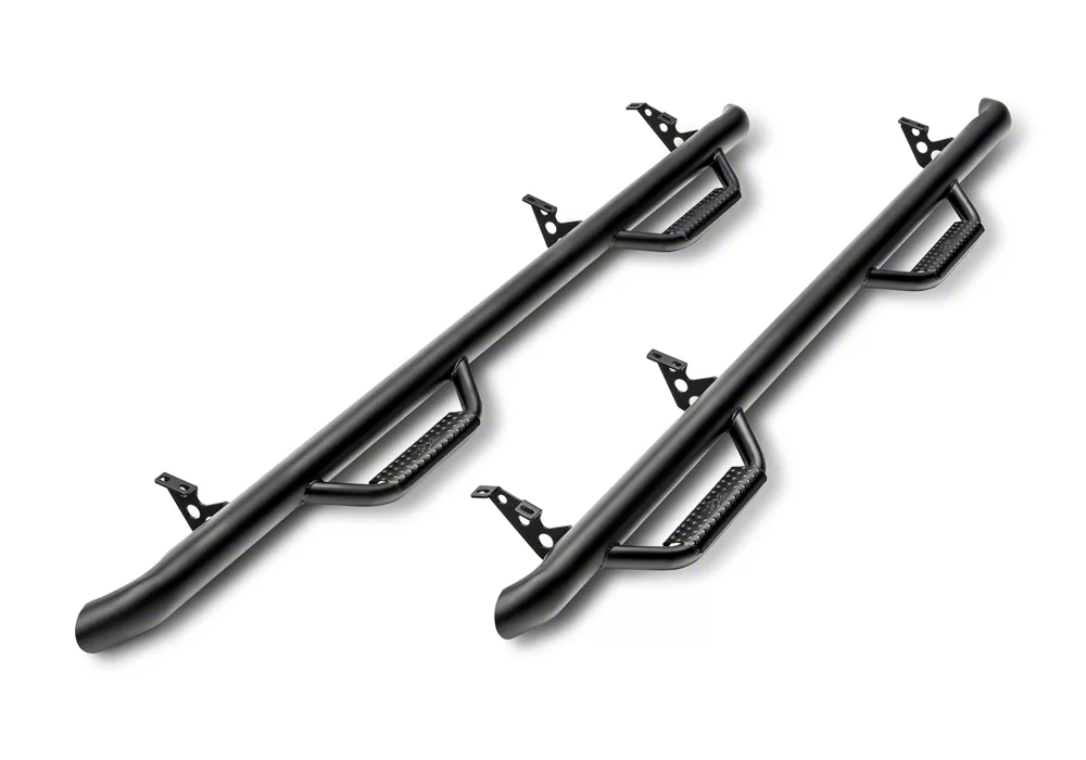 Heavy-Duty Construction. Crafted from heavy-duty, 3-inch steel tubing, these Nerf Side Step Bars exhibit exceptional strength and high corrosion resistance. The high-traction footpads are made of wear-resistant steel plates with punched and raised holes. Additionally, the steel frameworks are fortified by a textured black, powder-coated finish to resist corrosion, abrasion, and chipping, while appealingly enhancing your truck’s bold presence.