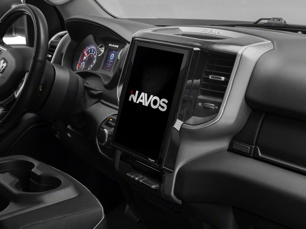 Navigation/Entertainment System. Upgrade the factory radio found in your 2022-2024 RAM 2500 to a state-of-the-art touch screen navigation/entertainment system with a Navos Generation 5 T-Style Radio. This Navos Gen 5 System features a 12.1-inch HD touch-screen LCD display with a factory style dash bezel that maintains an OE-Style appearance. With the Android 9.0 Pie operating system this nav unit is not just a larger display, it also includes AM/FM Tuner, Multimedia Player and PhoneLink capability. This Unit was designed to retain the factory Alpine System and factory CD player.