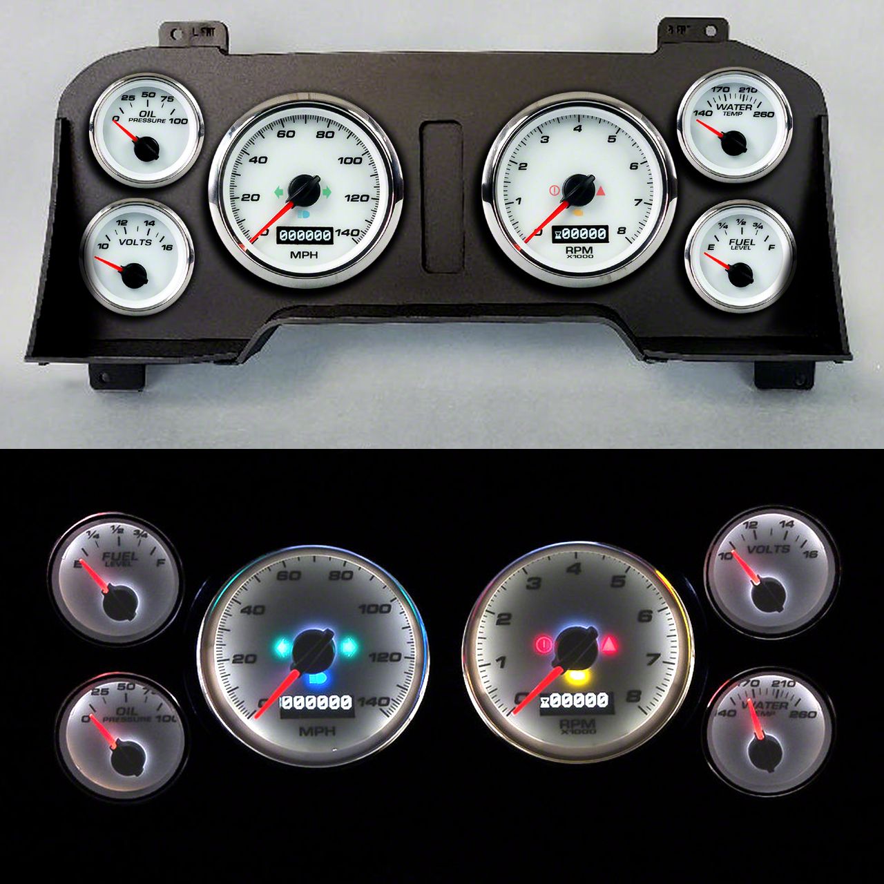 Construction and Appearance. Built with shock-proof and waterproof components, this gauge kit is engineered for durability. The scratch-resistant stainless or black bezels, real glass lenses, and white LED perimeter lighting provide a premium, long-lasting finish. Utilizing the Phoenix platform, it integrates OLED screens and stepper motor technology for accuracy and a modernized look.
