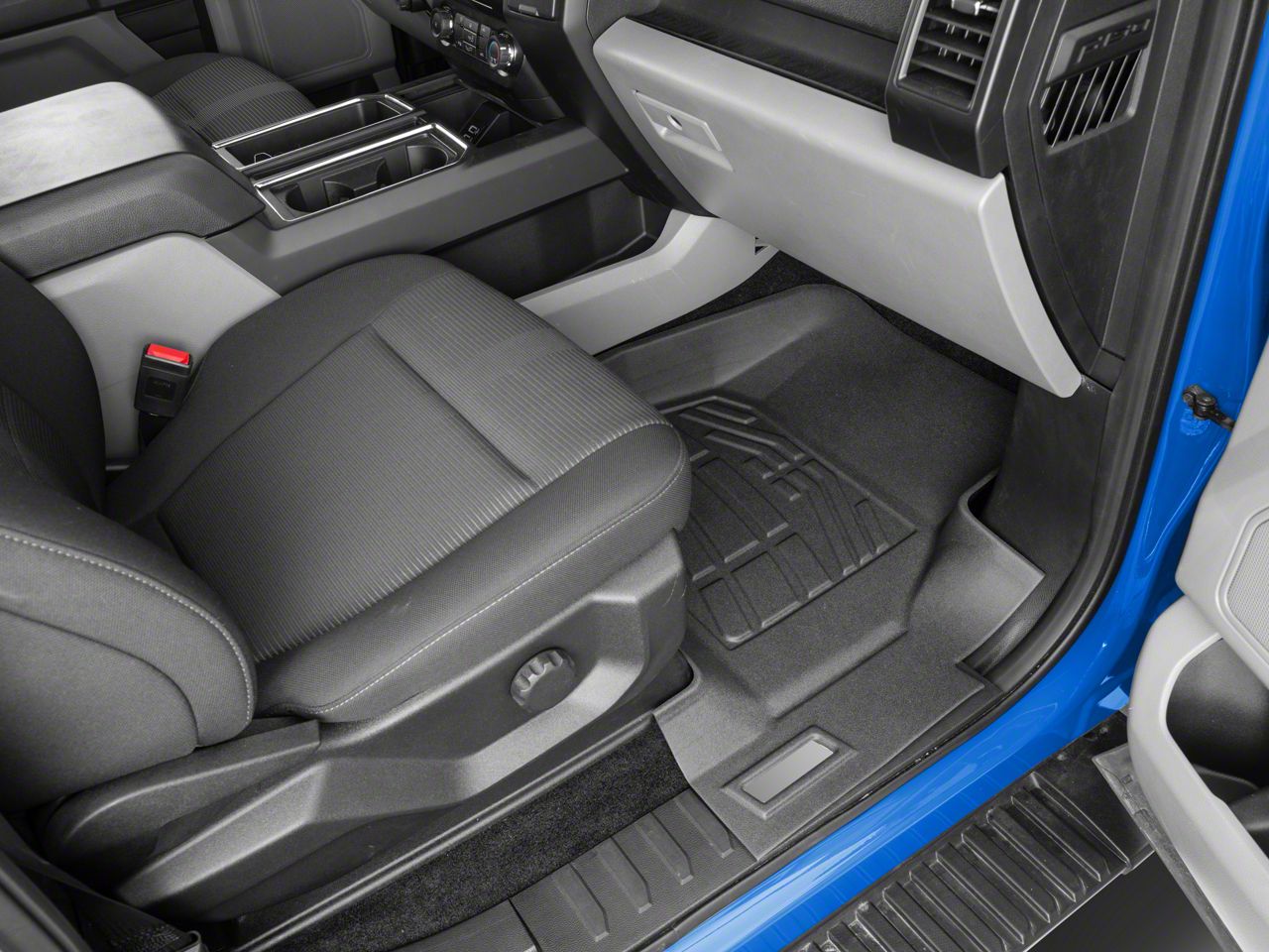 By RedRock. Deliver outstanding protection for your front driver and passenger side floors with the RedRock Sure-Fit Front Floor Liners in black. These super-density front row floor mats are constructed using high-grade, molded, rubberized copolymer capable of protecting your F-150's floors from mud, salt, water, and other elements, along with high side walls and a highly textured surface for full protection.