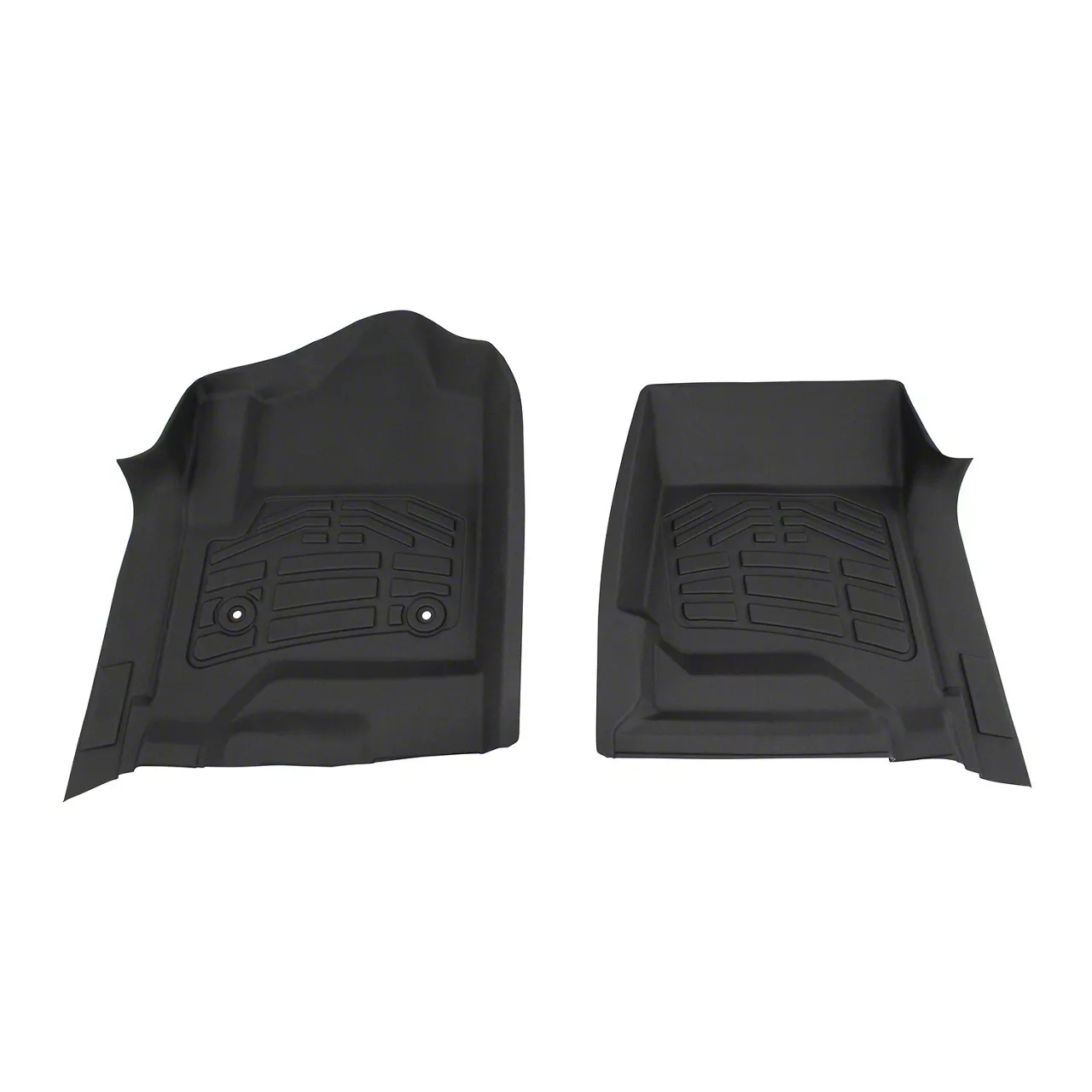 Custom Fit to Ensure Full Coverage. Keep your Sierra’s front carpets in great shape for years by simply putting these black RedRock Sure-Fit Front Floor Liners in place. The edges are designed to extend over the sill plates so that liquids won’t be able to spill over the sides of the liners. In addition, the surface has specially designed treads that are arranged so that debris is drawn away from your feet. The layout of the treads also allows for easy clean ups. Lastly, the textured surface adds a stylish touch and also extra grip for your shoes.