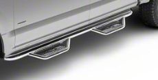 Reliable Nerf Step Bars. These N-Fab Cab Length Podium Nerf Side Step Bars are what you need to give your passengers and yourself safe and reliable access to your GMC Sierra 1500. It feature N-Fab’s patented hoop and drop-down steps so you can have easy access even with a lifted truck. The side step bars are also designed with all-new expanded and enclosed sure grip step plates for ultimate access in any weather condition.