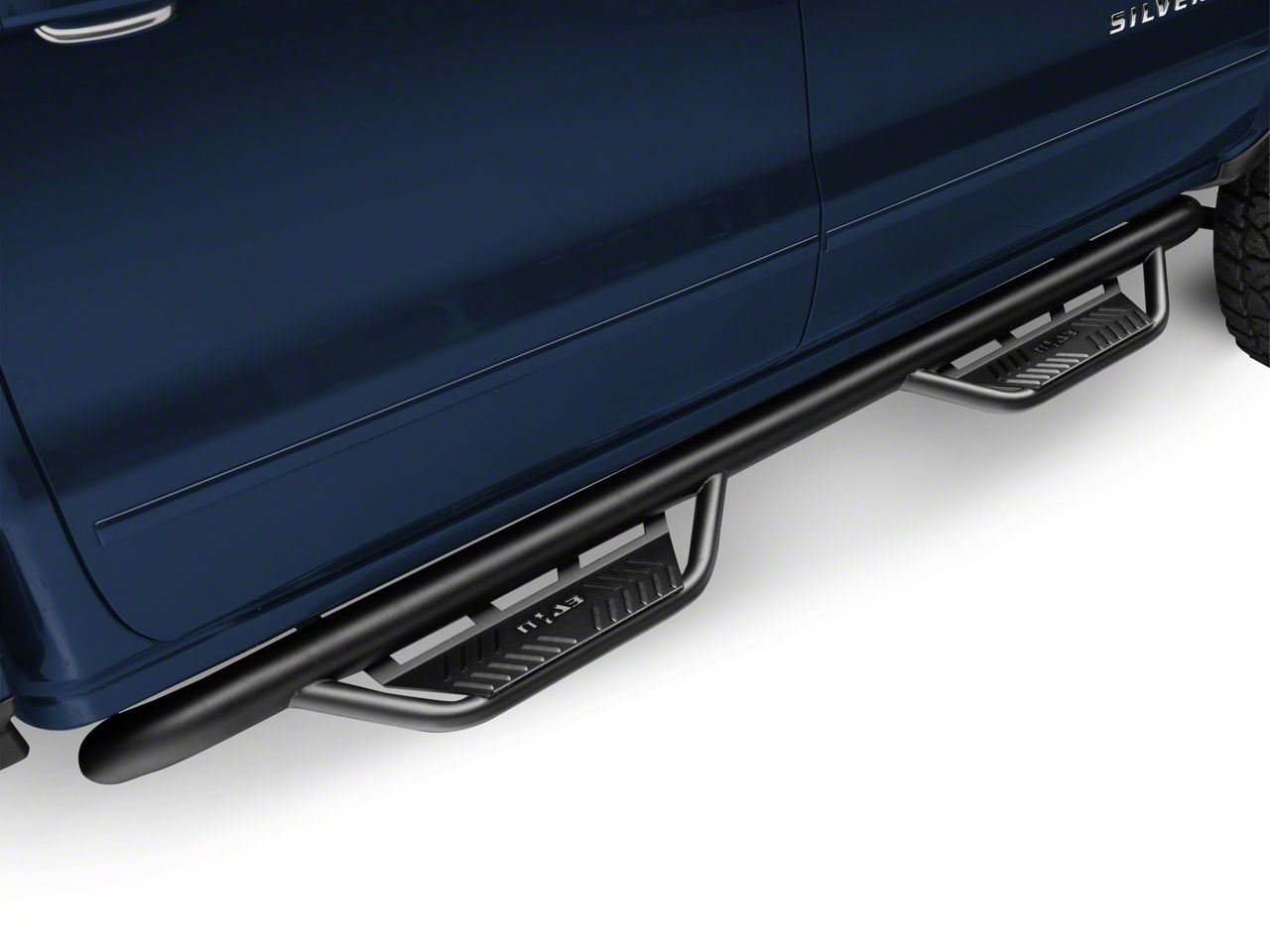 Application. These N-Fab Cab Length Podium Nerf Side Step Bars in Textured Black fit all 2014 to 2018 Chevrolet Silverado 1500 Crew Cab models.