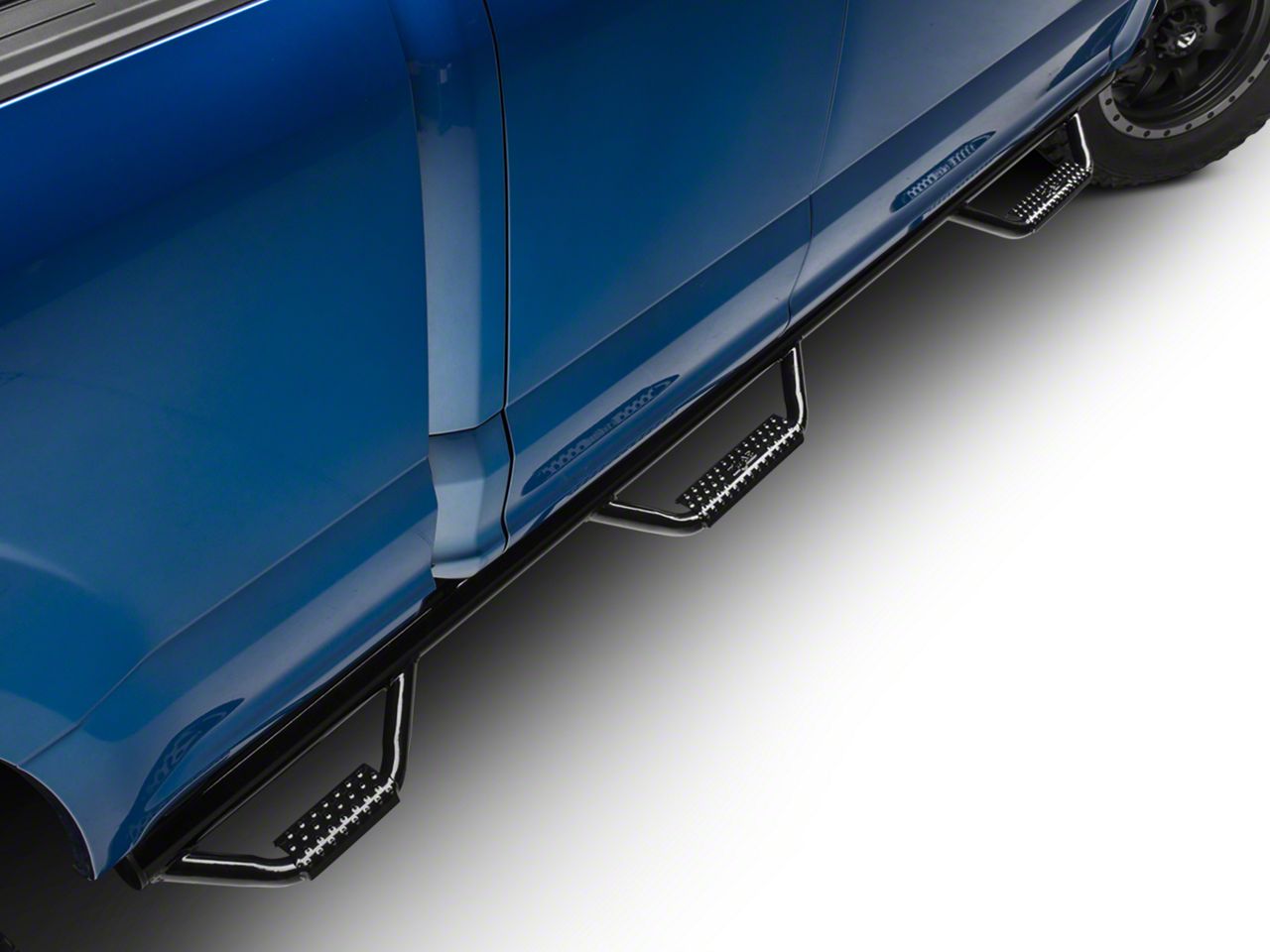 Application. This pair of N-Fab Bed Access Nerf Step Bars in a Gloss Black finish is designed to be used on the 2015-2025 F-150 SuperCabs equipped with a 6.5 ft. bed.