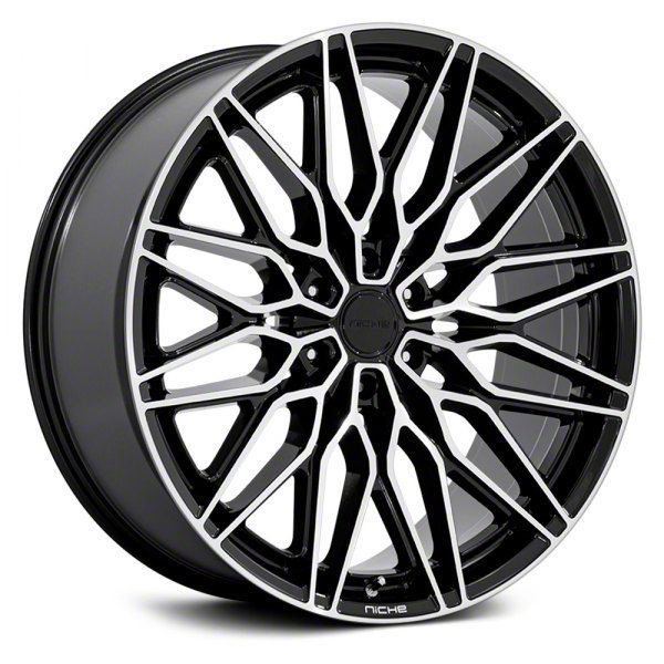 Niche Calabria 6 Gloss Black with Machined Lip 6-Lug Wheel; 24x10; 20mm Offset. The Niche Calabria 6 Gloss Black with Machined Lip 6-Lug Wheel offers a striking balance of style and refinement. Its unique design accentuates the vehicle's aesthetic, while the premium construction underscores its robust nature. This wheel is a perfect choice for those seeking both elegance and a strong visual statement.