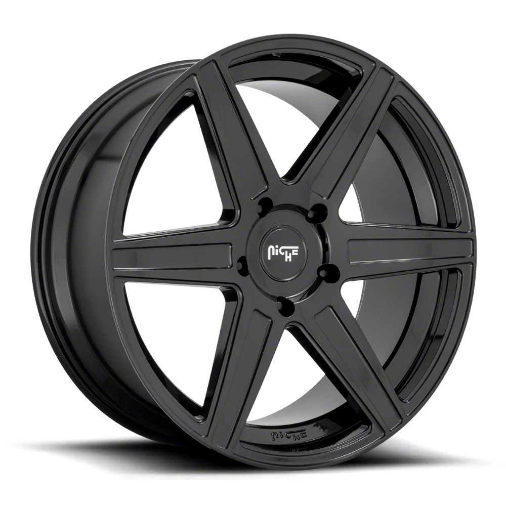 Niche Carina Gloss Black 5-Lug Wheel; 24x10; 25mm Offset The Niche Carina Gloss Black 5-Lug Wheel combines a sleek, sophisticated design with premium construction that enhances the visual appeal and complements a wide range of vehicle styles. This wheel is perfect for those seeking to make a bold statement while maintaining elegance and robustness.