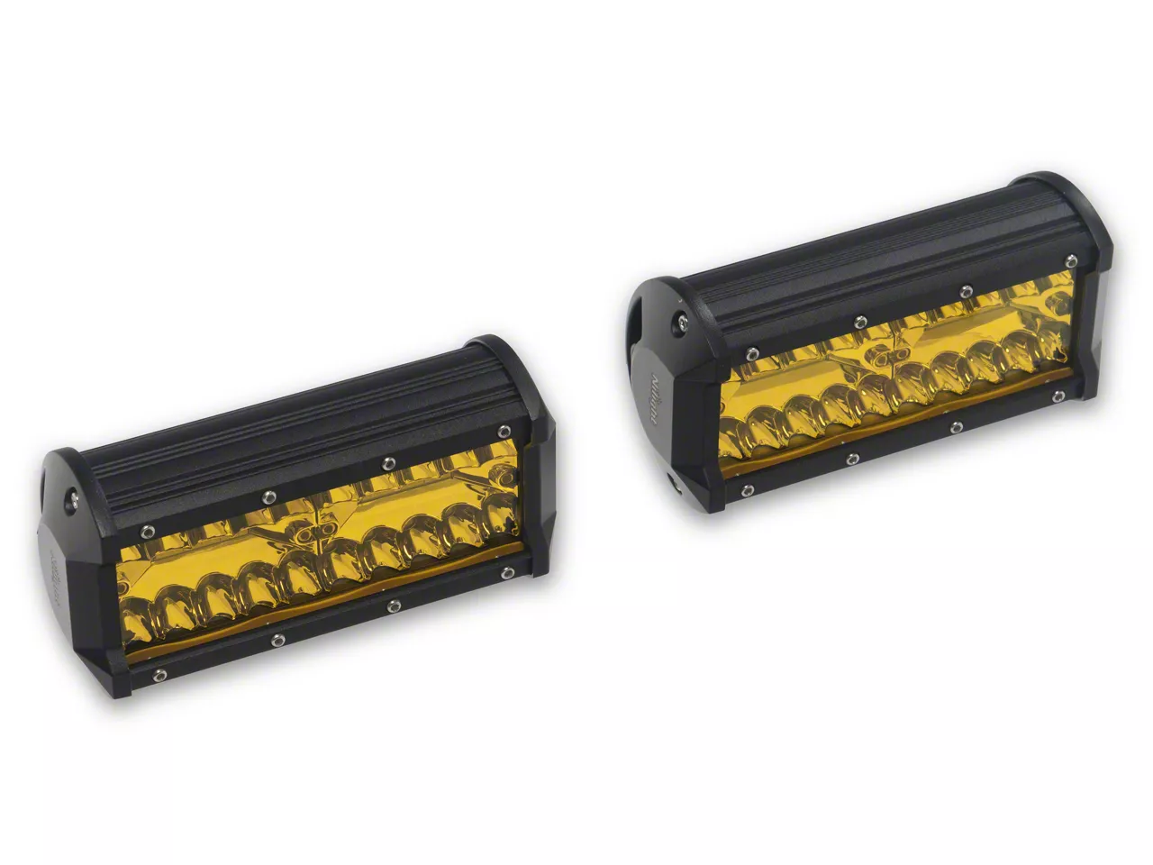 Reliable Lighting. Illuminate your path with the Nilight 6.50-Inch Triple Row LED Fog Lights; Spot/Flood Combo Beam; Amber. These lights are a game-changer for drivers who demand superior visibility in challenging conditions. Equipped with triple row LED technology, these fog lights produce a powerful, high-intensity illumination that cuts through fog, rain, or darkness. The combination of spot and flood beams offers a perfect balance, providing a wide and far-reaching light pattern.