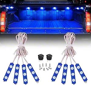 Nilight 24 LEDs Lighting Kit was equipped with super brightness 2835SMD, two separate strands of 4 light pods with 3 LEDs per pod giving you a total of 8 pods and 24 ultra-bright SMD LEDs. It allows you to work on your truck or pickup after dark without having to hold a flashlight or plug in a portable work light. Each rectangle lighting pod is small in size but provides plenty of light and only 0.2 of an inch thick makes them extremely easy to hide and install.