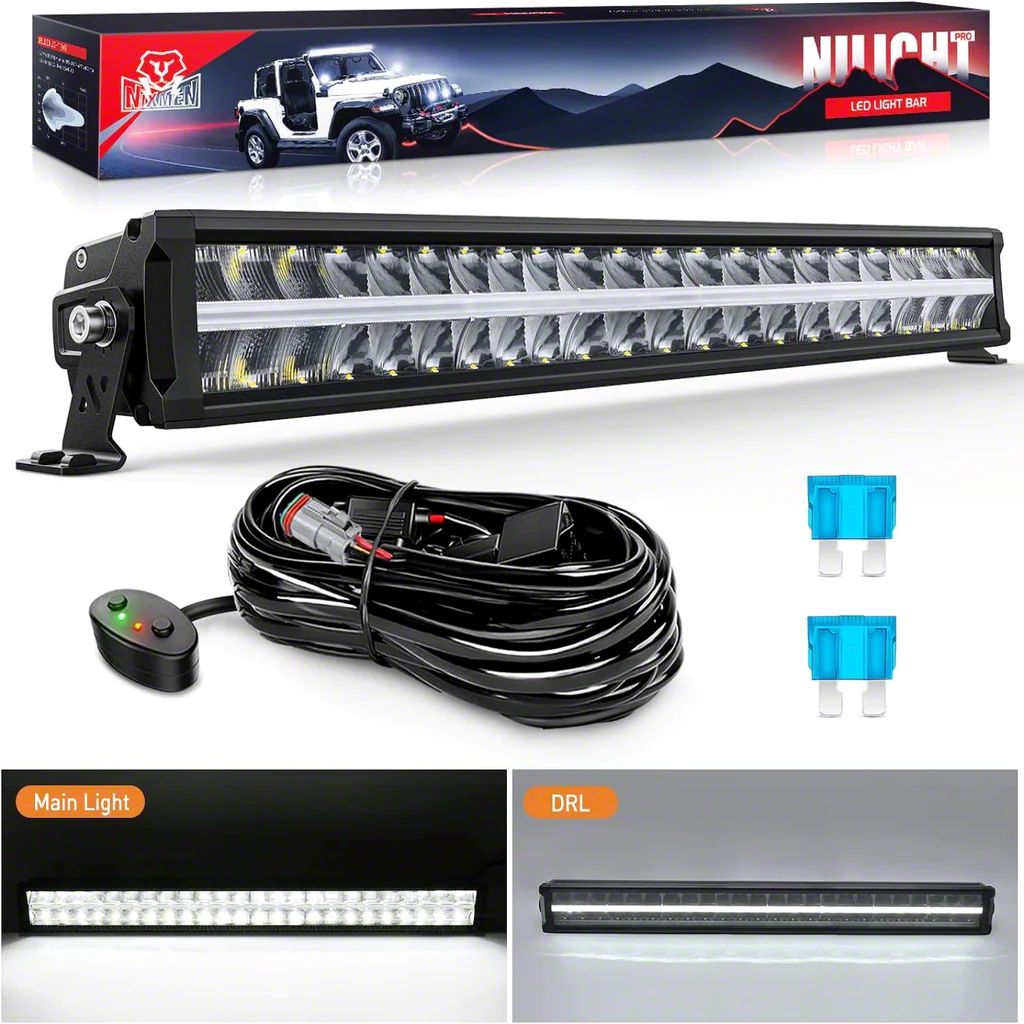 Advanced Illumination Technology. Enhance your vehicle's lighting capability with the Nilight Light Bar, a thirty-inch model equipped with dual-row LED lights. This light bar features DRL (Daytime Running Light) functionality and an anti-glare flood/spot combo, providing versatile lighting options for any environment. The matte black finish on the robust 6063 and ADC12 aluminum housing not only adds a sleek look but also ensures durability. With IP68 water and dustproof certification, this light bar is built to withstand harsh weather conditions.
