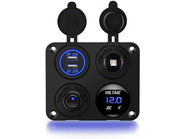 Application. The Nilight 4-in-1 ON/OFF Charger Socket Panel with Dual USB Socket, Power Outlet, LED Voltmeter and Cigarette Lighter Socket offers universal fitment.