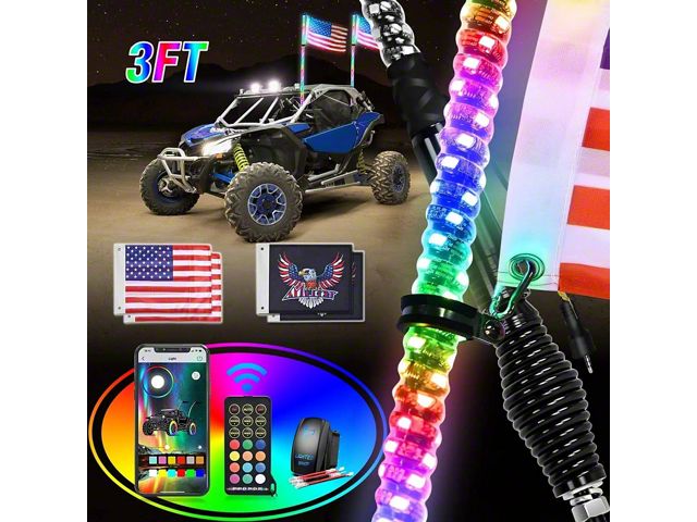 Nilight 2PCS 3FT APP & Remote Control RGB LED Whip Light with Spring Bases