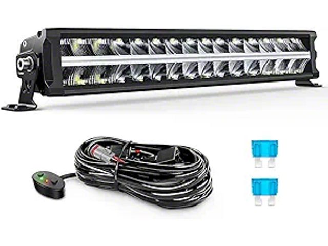 Installation. With its universal fit design, this LED light bar is suitable for a wide range of vehicles. It comes with a wiring harness, switch, and two fuses, facilitating a straightforward installation process that allows for quick and easy setup.