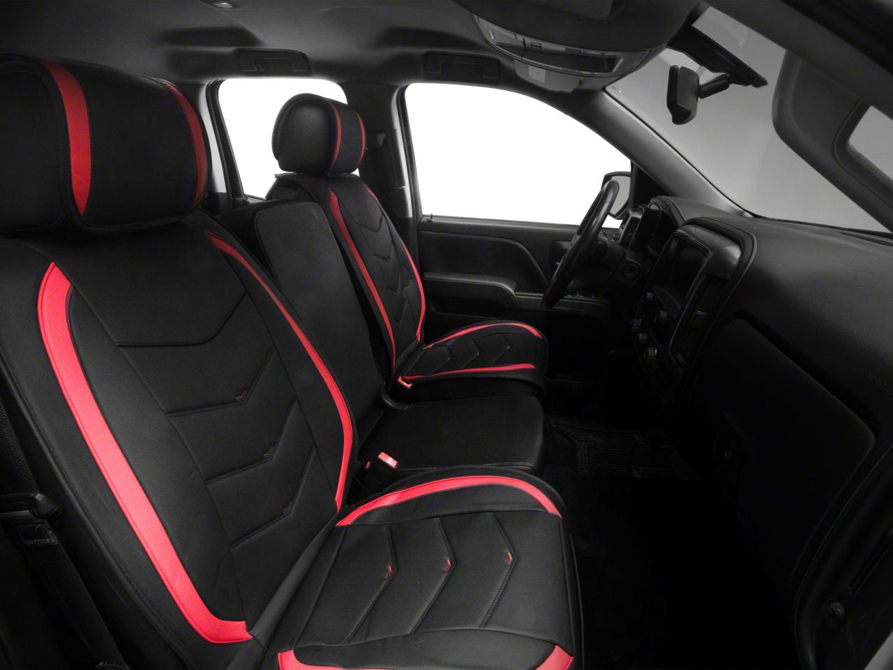 Design. These Nilight Waterproof Leather Front Seat Covers boast a striking black and red color scheme, adding a touch of elegance and sportiness to your vehicle's interior. The sleek design is not just about aesthetics but also complements the contours of the seats, enhancing the overall look of your Silverado 1500. This stylish design choice ensures that your vehicle stands out, reflecting a sense of your personal style and sophistication.