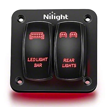 • Two-Gang Aluminum Rocker Switch Panel with LED Light Bar and Rear Light Rocker Switches